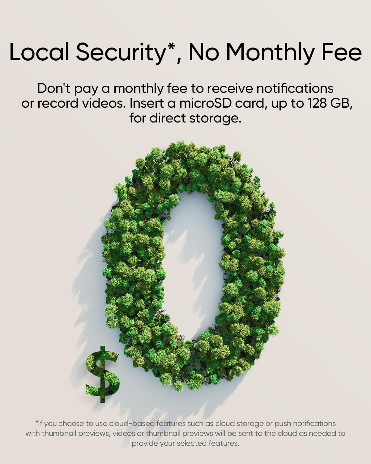 No Monthly Fees: Store recordings directly using a MicroSD card (up to 128GB) without additional costs.