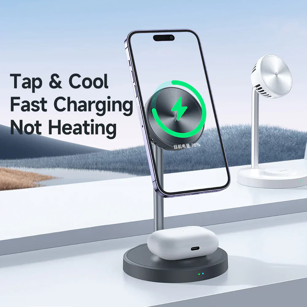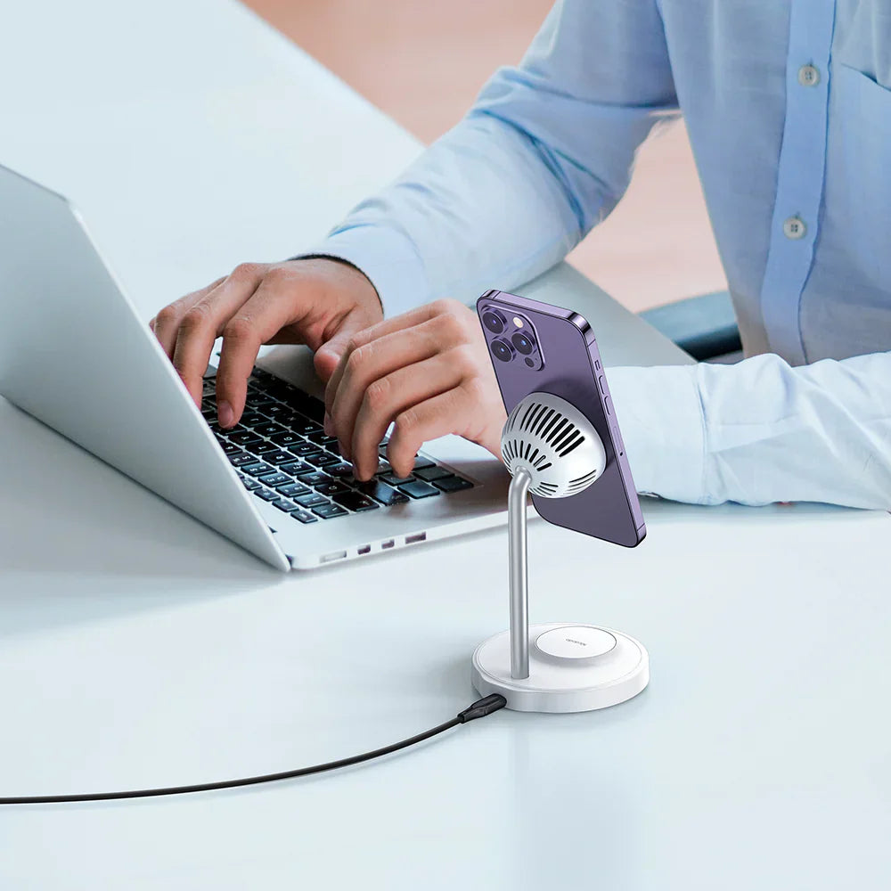 Mcdodo 2 in 1 Magnetic Wireless Charger with Cooling Fan - White & Grey