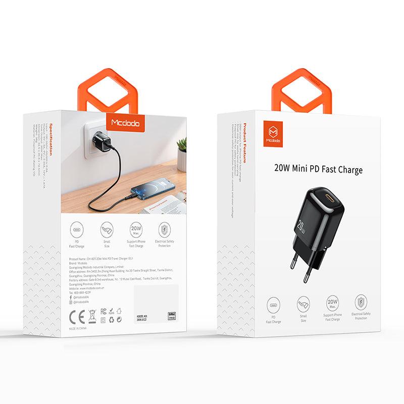 MCDODO 20W PD Fast Charger EU Light weight Mini Charger - Black & White