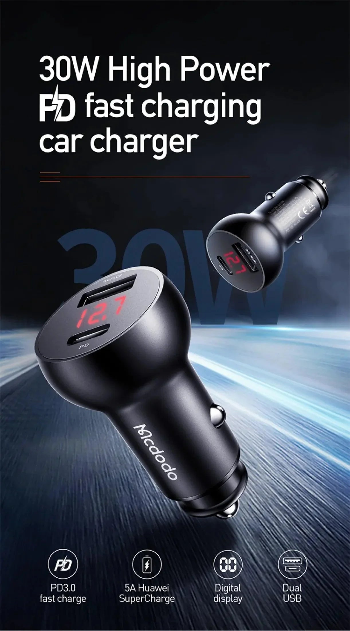 Mcdodo 30W PD 5A Fast Car Charger - Black