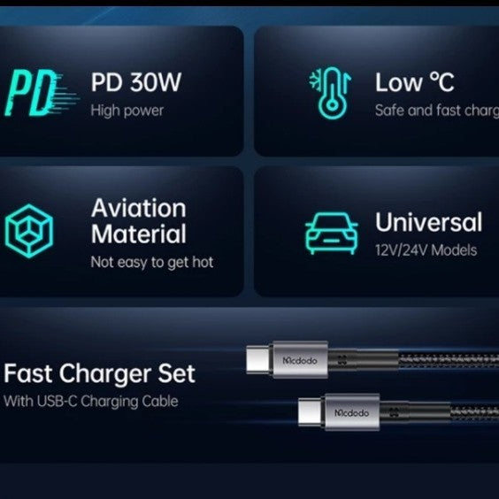 Mcdodo 30W PD Car Charger with C to C Cable Fast Charging - Black