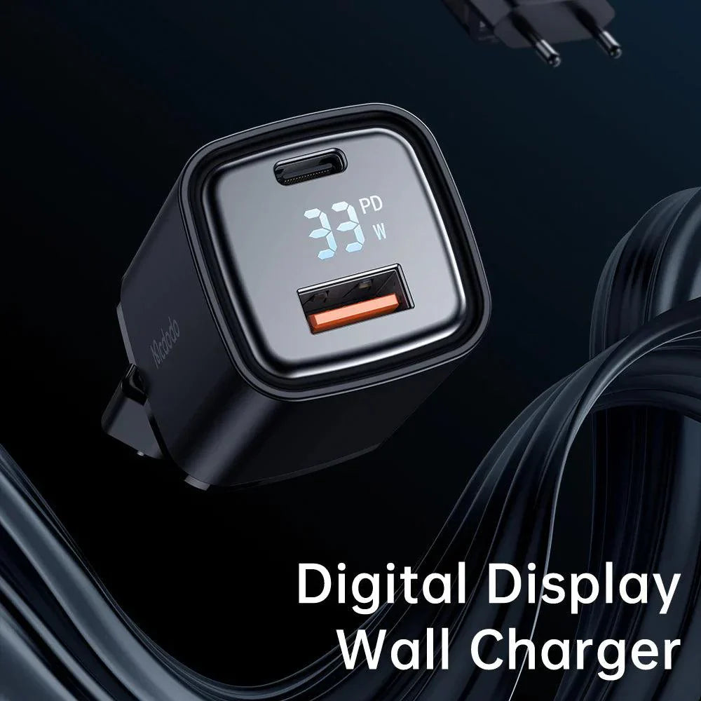 Mcdodo 33W PD & QC Dual Port Fast Charger and Digital Display - Black