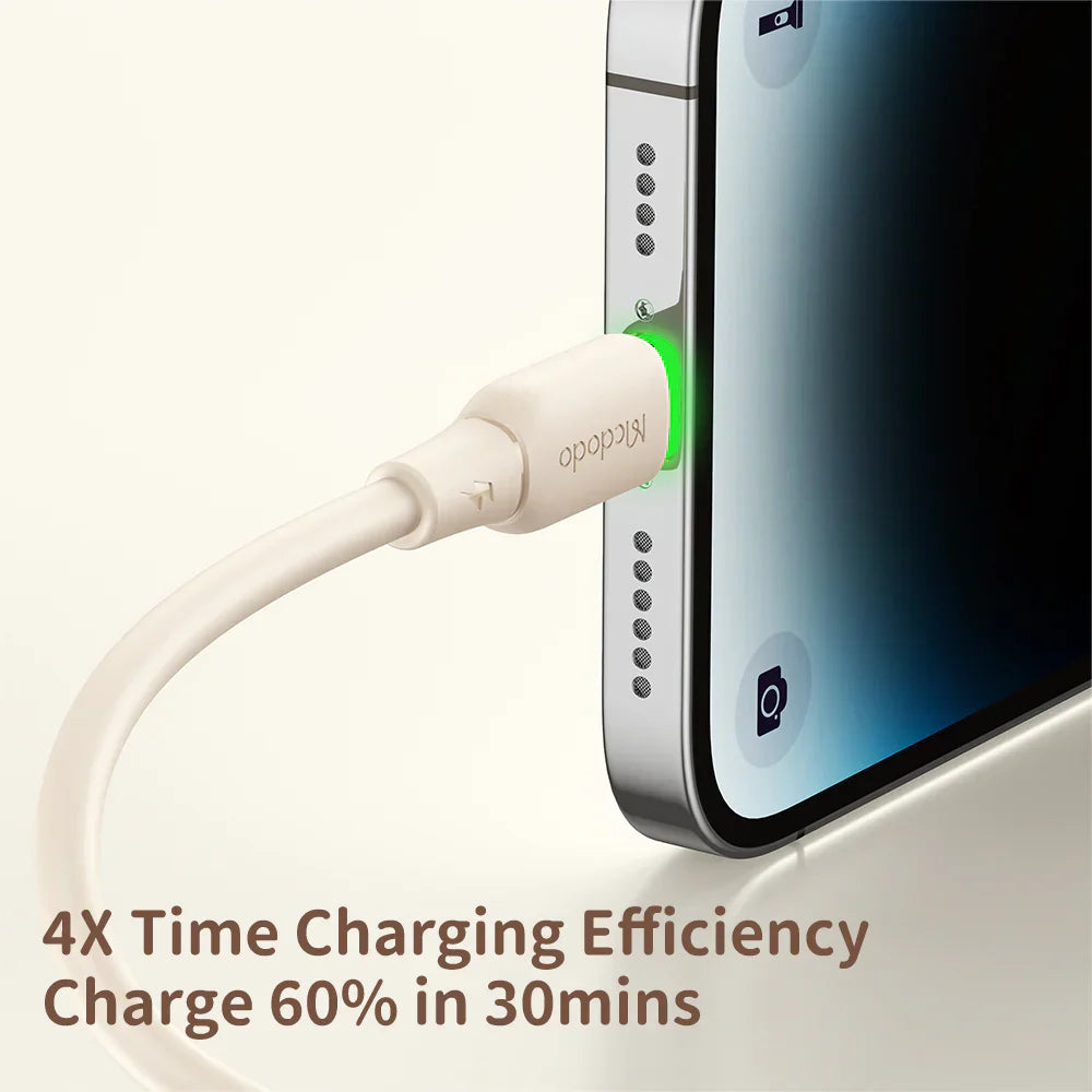 Mcdodo 36W USB C to Lightning Data Cable with LED 1.2m - Black & Beige