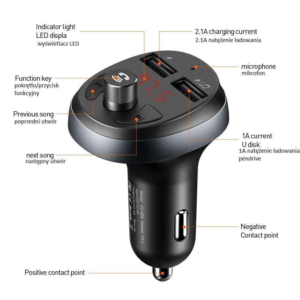 Mcdodo Bluetooth FM Transmitter Car Charger 5V 3A Fast Charge - Black