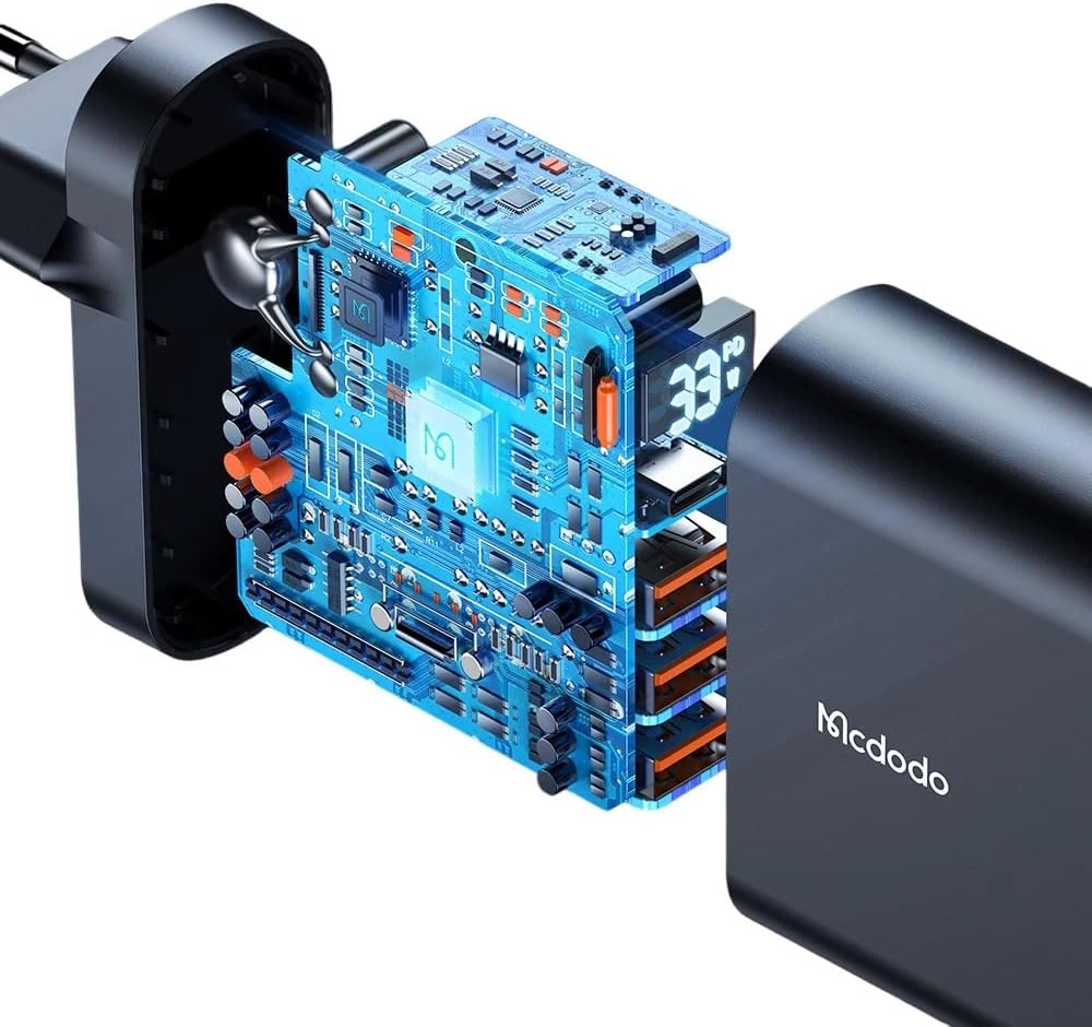 MCDODO Charger Adapter with Digital Display 33W 1 TYPE C 3xUSB - Black