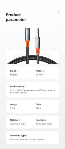 McDodo DC3.5 Audio Cable 1.2M - Black