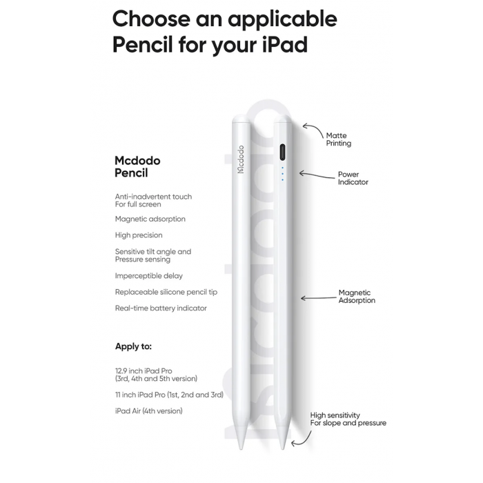 Mcdodo Stylus Pen for iPad Battery Display Version - White