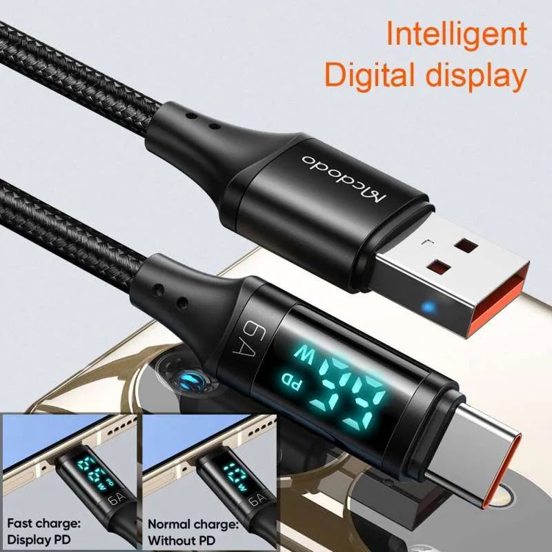 Mcdodo Type C Fast Charging Cable with Digital Display 1.2m - Black