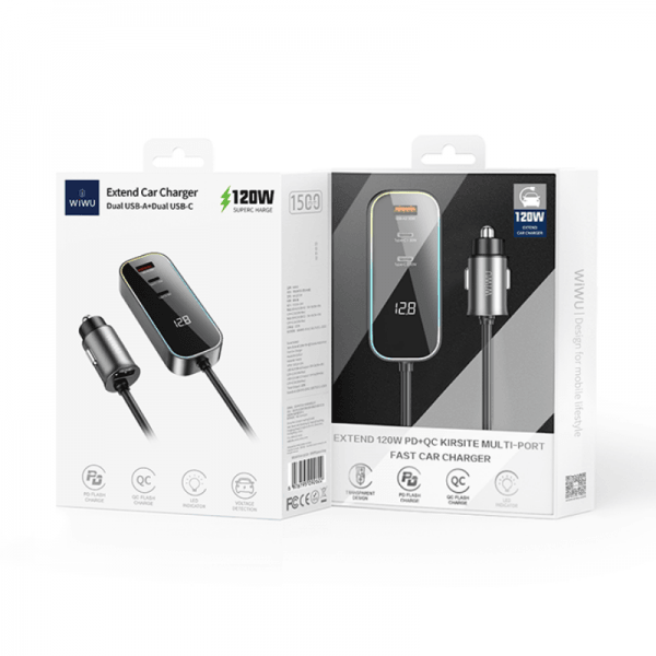 WIWU WI-QC014 120W PD+QC KIRSITE EXTEND FAST CAR CHARGER MULTI-PORT - BLACK